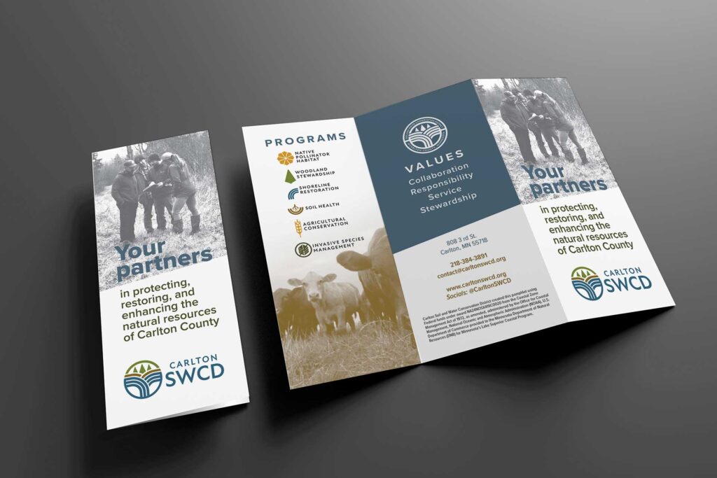 Carlton County SWCD looked to Creative Arcade when it came time for a brand refresh. Over the years, their mission had grown, expanding programs that protect, restore, and enhance Carlton County’s natural resources. But their brand needed to catch up.