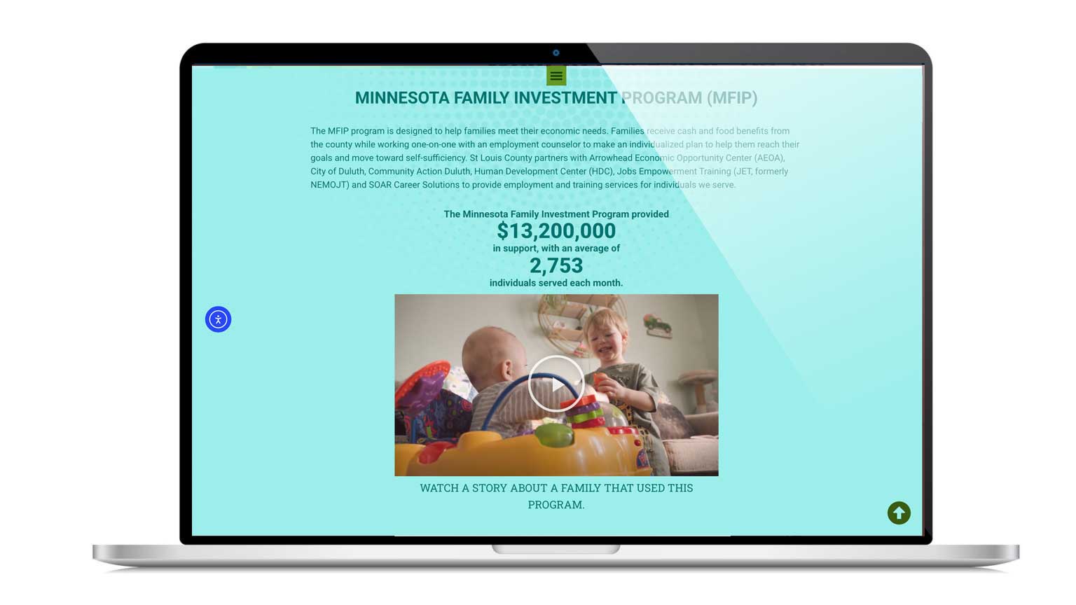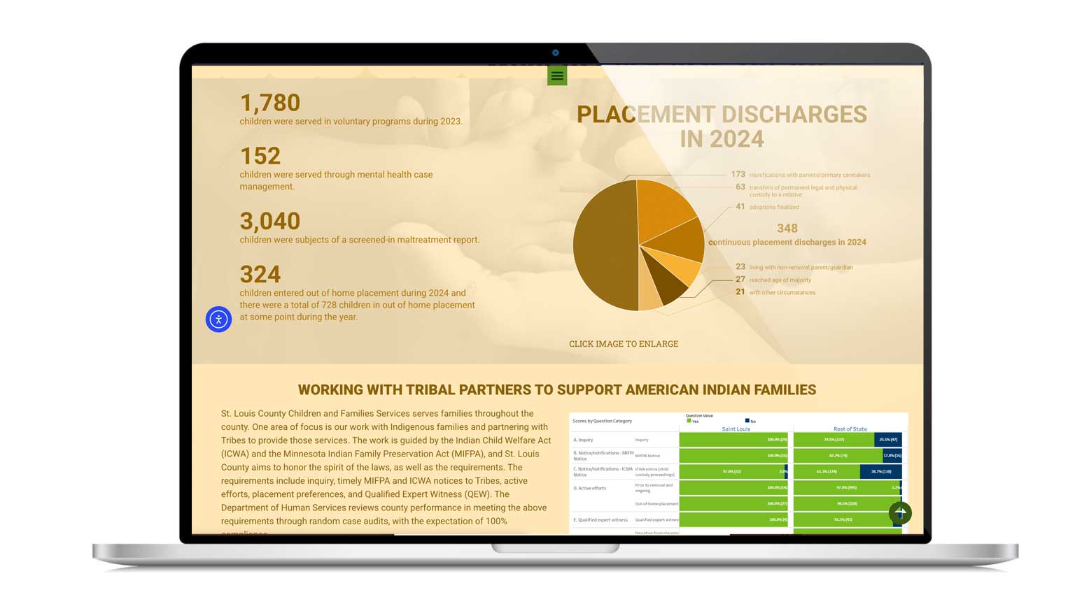 Every year, the county publishes a Community Impact Report packed with meaningful data, such as program outcomes, regional trends, and community progress. The problem? The traditional reports created barriers for residents. In the past, St. Louis County printed and distributed a limited number of reports. However, this approach limited reach, the dense data discouraged engagement, and residents struggled to see how the information connected to their everyday lives.
